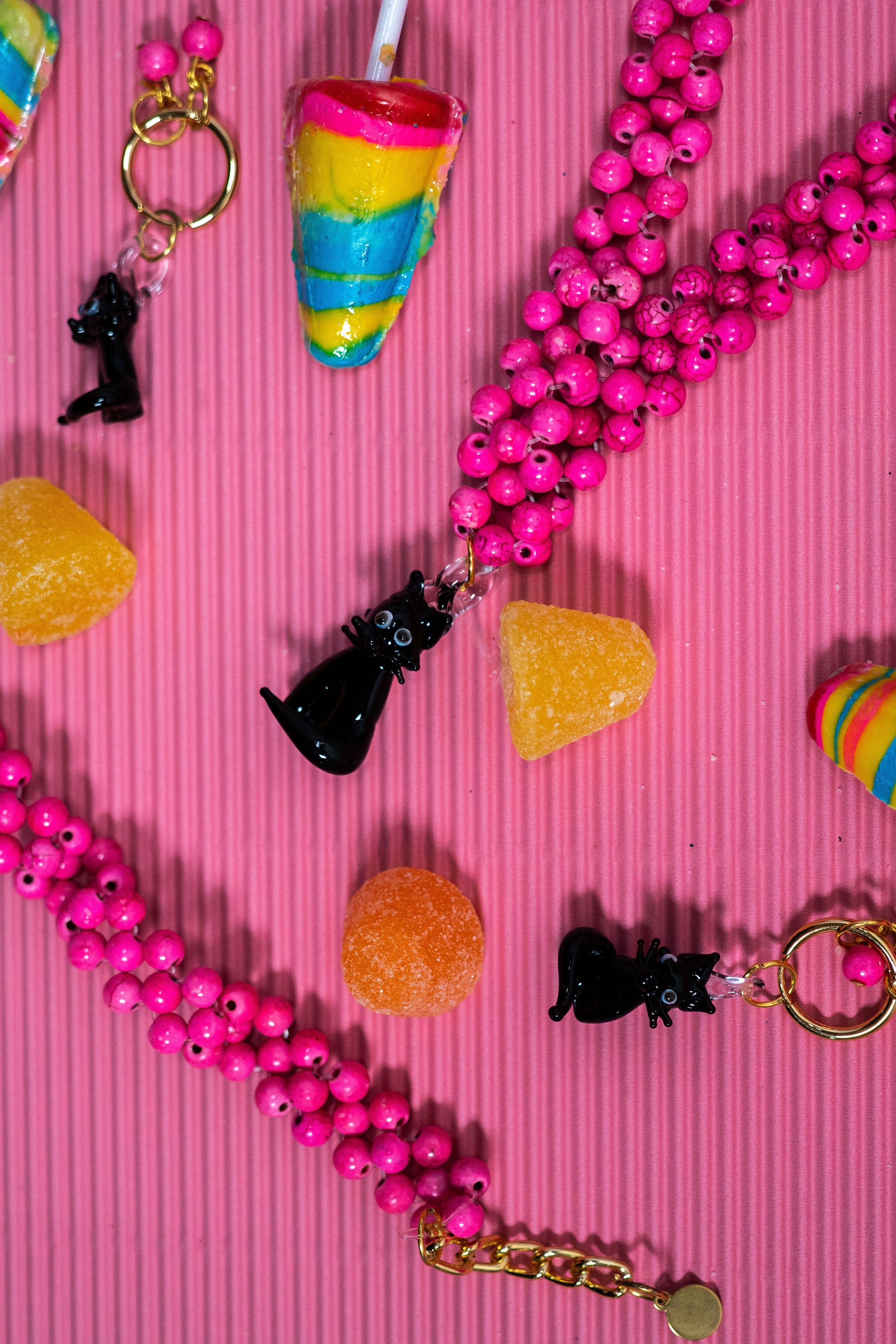 Collar tipo choker con un diseño divertido y dije de vidrio soplado en forma de michi, no hay nada más cool que usarlo.