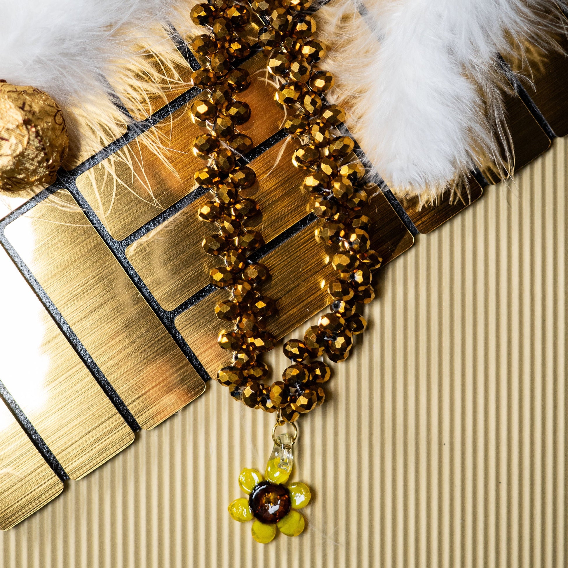 -Dije en forma de girasol de vidrio soplado.