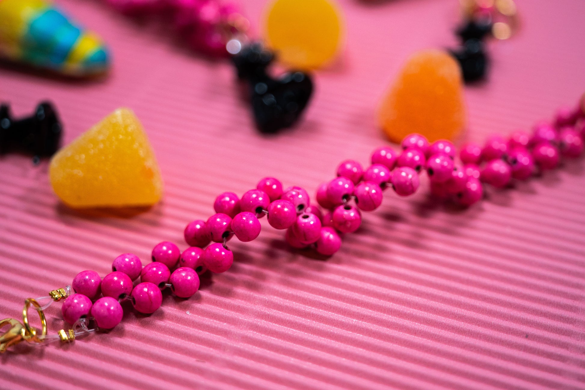 -Pulsera de nylon con cuentas de turquesina redonda rosa y cierre de gancho.